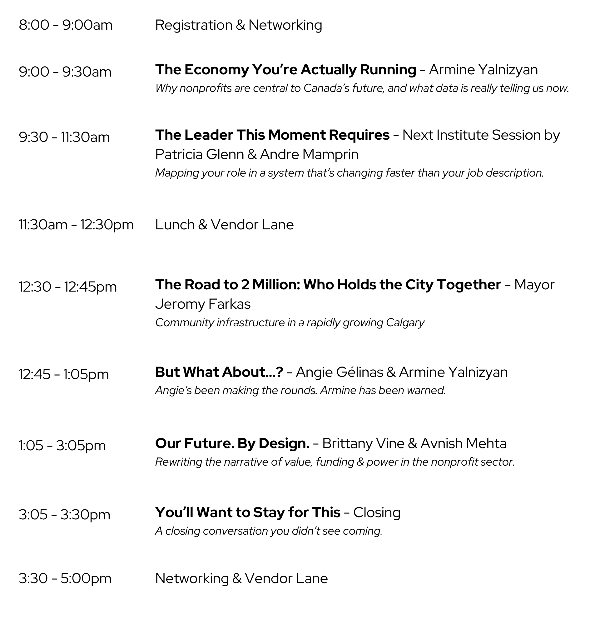 This isn’t your typical conference. We are ditching the traditional breakout rooms and endless slide decks for a massive, large-scale workshop experience. Instead of sitting in the dark, you will be at the table, actively designing a future that reflects the true power and economic reality of Alberta’s nonprofit sector.